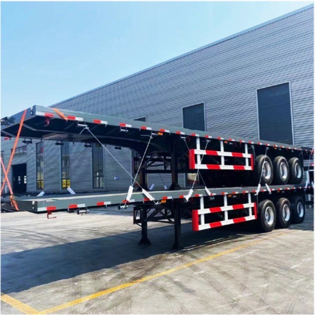 ВошенгПлоские полуприцепы обычно используются для перевозки контейнеров 20FT / 40FT / 45FT. Чем ниже центр тяжести, тем лучше стабильность и безопасность,чем лучше способность перевозить сверхвысокие нагрузки и преодолевать препятствия над головойВ зависимости от количества осей и размера шин, нагрузка на полуприцеп также различается.и грузовой диапазон составляет от 40 до 120 тонн.